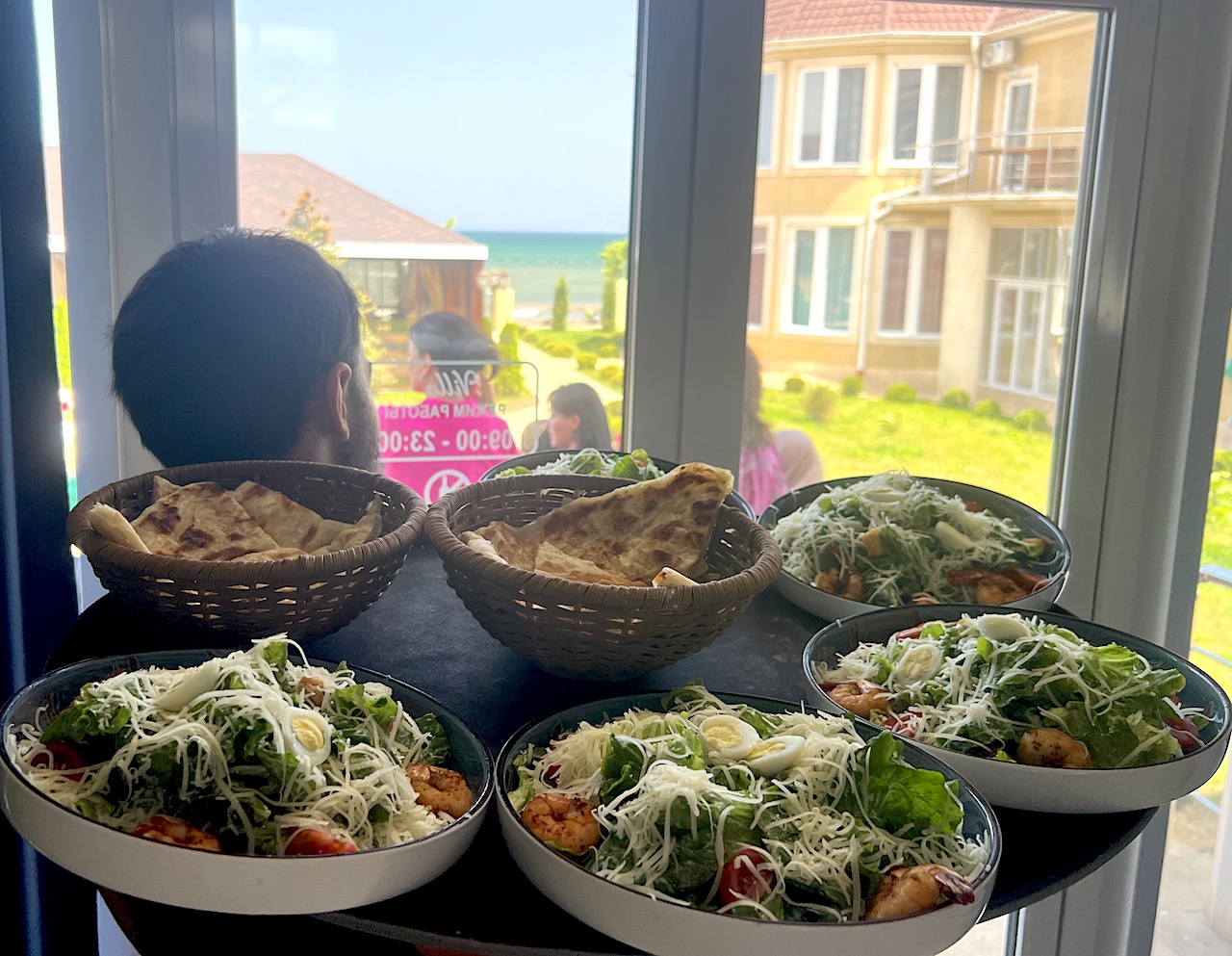 Просторная терраса с видом на море готова принять до 70 гостей. Беседки рассчитаны на 4-6 человек.