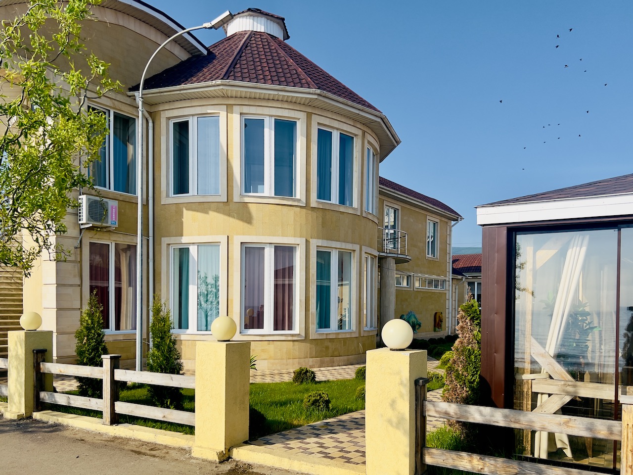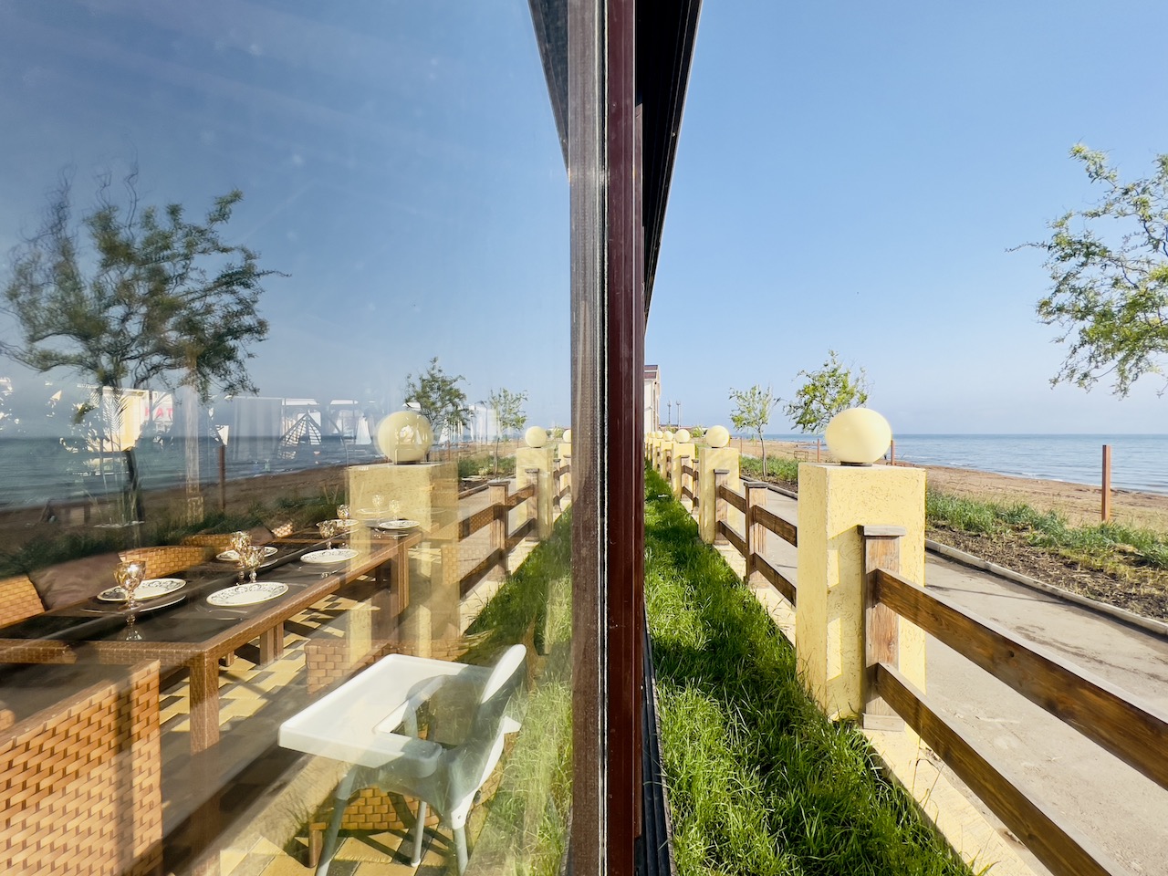 Уютная кабинка на втором этаже ресторана, со своим балконом с видом на море. На балконе – кресло-качели.